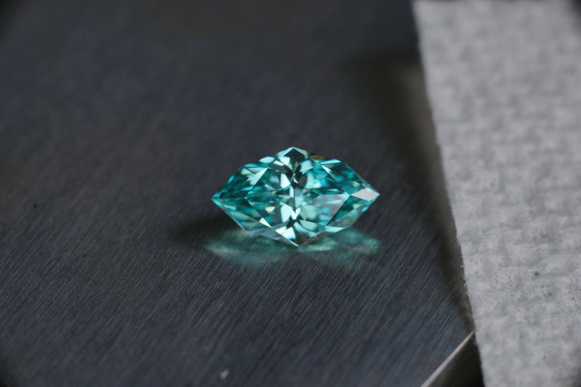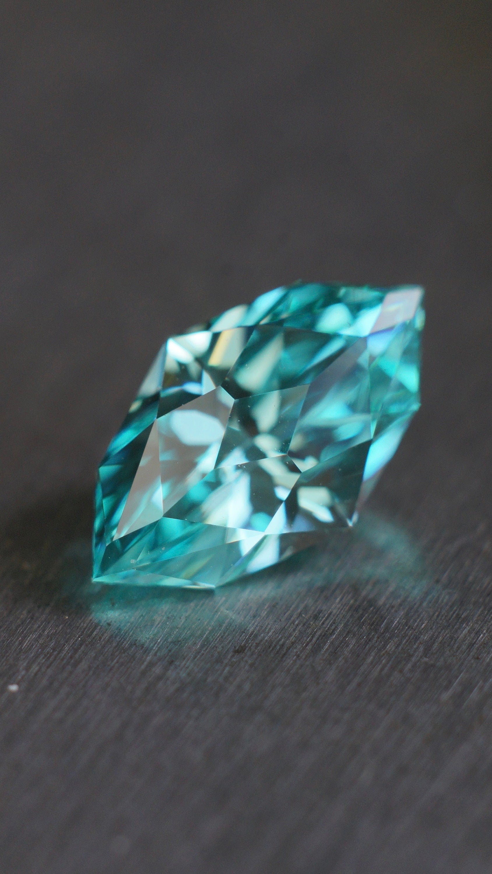 Paraiba describes a specific color of tourmaline found in the Paraíba state in Brazil. Recently, synthetic YAG and sapphire has come on the market, looking to emulate that very specific neon sky blue. The Paraiba YAG material is SO close, but has lacked saturation in the other stones I have cut. Luckily this ‘Shattered Glass’ design deepens color considerably, and it has created the best Paraiba Blue in lab material by a long shot.