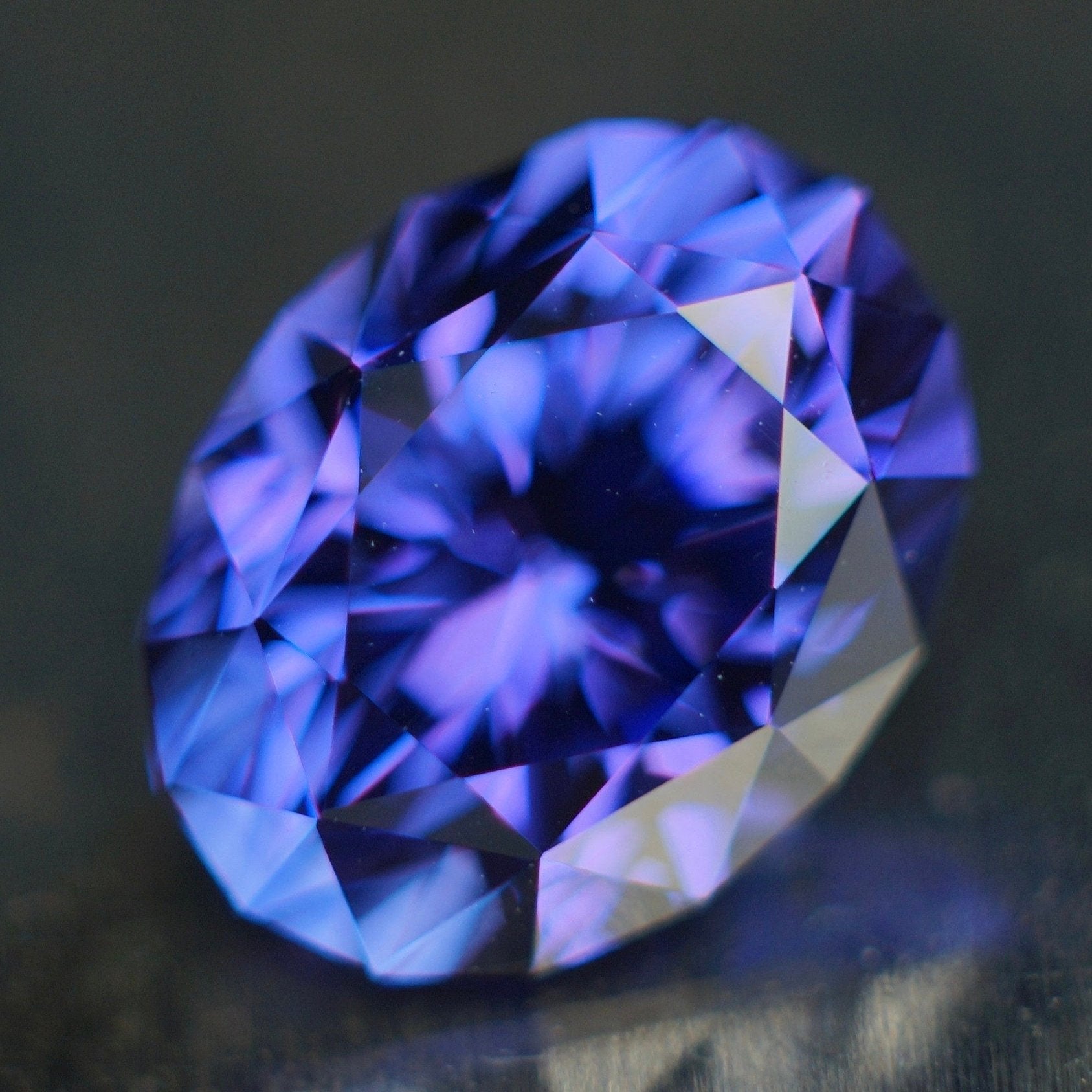Made to order YAG (synthetic garnet) loose oval shaped stone. This royal blue to royal purple color is a perfect simulant for Tanzanite. However, YAG is harder (more durable) and has greater dispersion (more rainbows) than tanzanite.